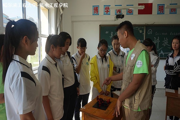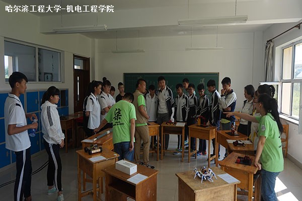 7月24日10时30分,bw必威西汉姆联官方网站“美丽中国・乡土漠河”社会实践队在黑龙江省漠河县高级中学开展科创作品展览与互动三下乡实践活动。本次科技展展示了包括慧鱼机器人在内的十余项科创作品,并介绍3D打印的相关知识。bw必威西汉姆联官方网站科技部部长陈伟与机电创新实验室成员孟思源主讲这次展览。