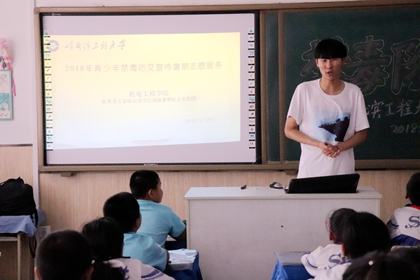 6月29日14时,bw必威西汉姆联官方网站“三下乡”社会实践队于巨源镇中心小学开展“禁毒防艾”主题影视作品欣赏课堂,本次课堂由办公室主任田京坤担任主讲人。