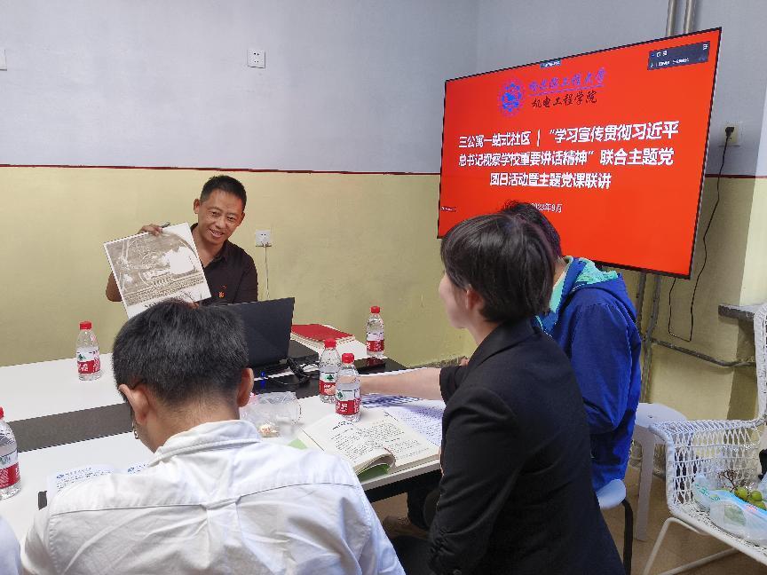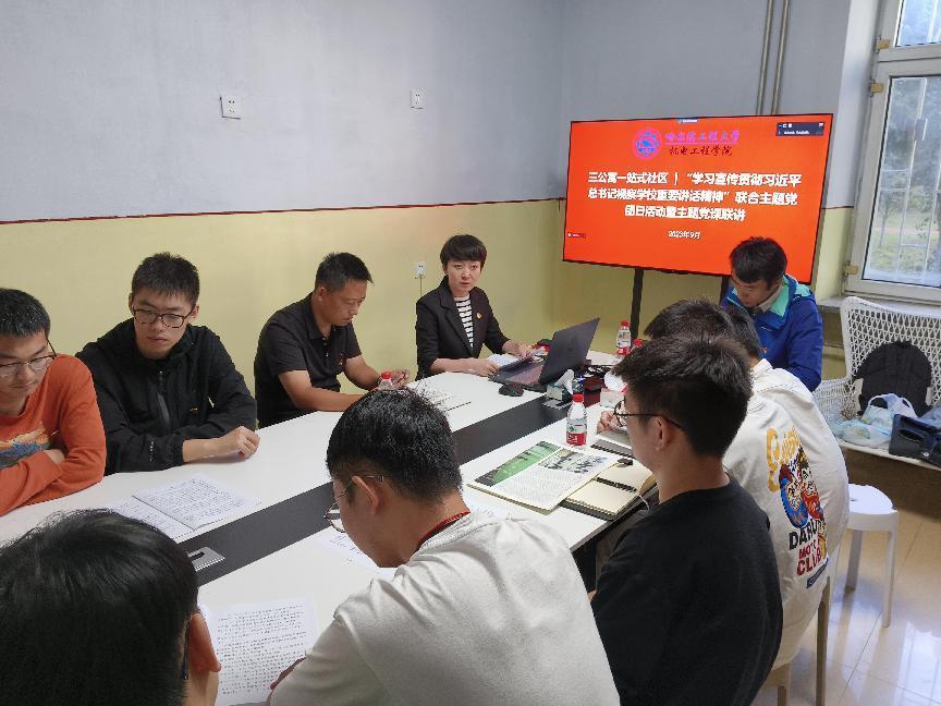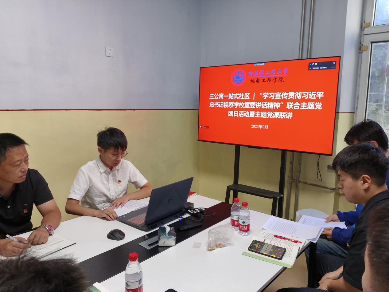 2023年9月22日下午,三公寓社区召开“学习宣传贯彻习近平总书记视察学校重要讲话精神”联合主题党团日活动暨主题党课联讲。工业设计系党支部、院直机关党支部、博士第一党支部、本科生第二党支部、三公寓社区4-1班团支部参加会议。院直机关党支部书记刘鸣主持本次党团日活动。