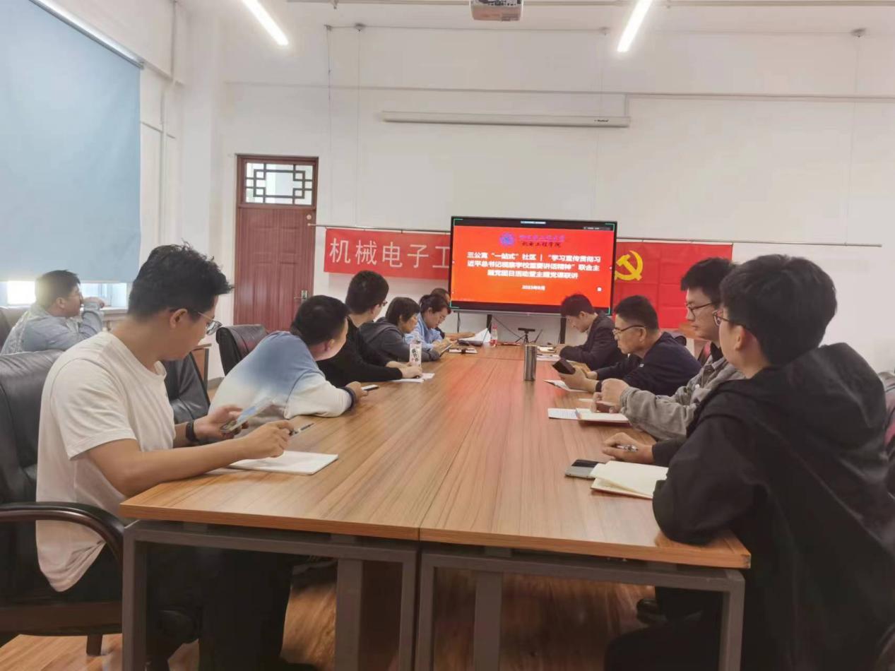 2023年9月27日下午,机械电子工程系党支部召开“学习宣传贯彻习近平总书记视察学校重要讲话精神”联合主题党团日活动暨主题党课联讲,机械电子工程系党支部、硕博联合二党支部、机械电子工程系学生第一、第二党支部、本科生第三党支部、三公寓社区4-4团支部、机械电子工程系全体学生参会。机械电子工程系党支部书记王玉甲主持活动。