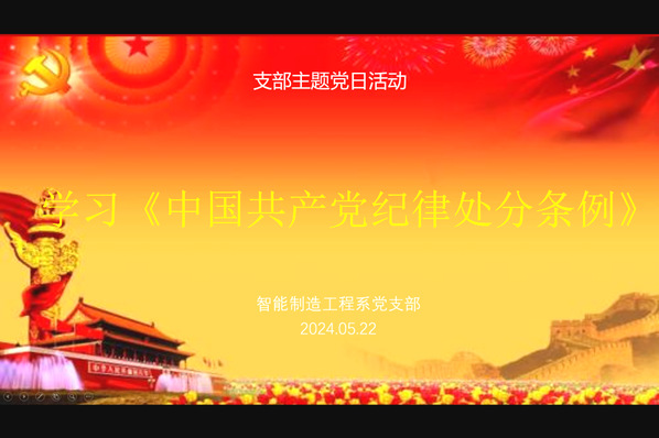 2024522日下午,智能制造工程系党支部召开“学习《中国共产党纪律处分条例》主题党日活动,智能制造工程系全体教师参加会议。院长徐建安以“认真学习《中国共产党纪律处分条例》推动党纪学习教育走深走实”为题讲授了一堂生动的专题党课。