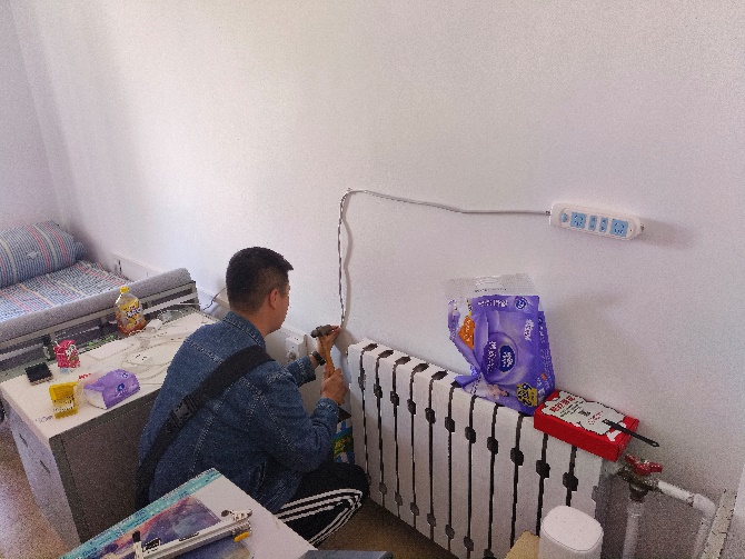 冯启营为研究生寝室安装插排、固定电线