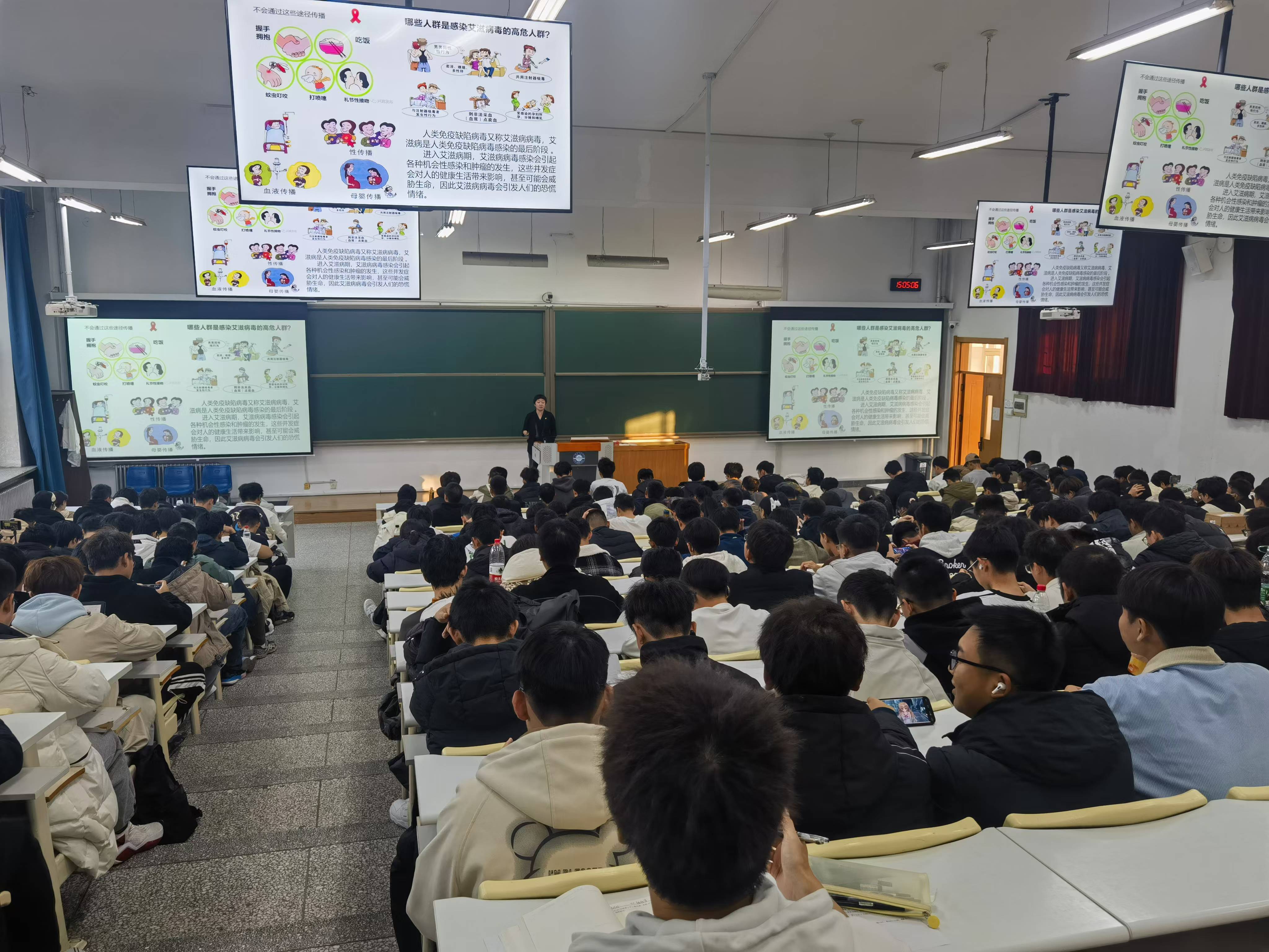 王茜老师传达校园文明月活动有关要求及安排,讲解了寝室消防安全、实验室安全、防范传染病、禁毒防艾等教育内容。她指出,寝室要经常开窗通风消毒,保持室内环境整洁。号召同学们要保持个人卫生,养成良好的卫生习惯。做到均衡饮食、保证充足睡眠、保持愉快心情、加强体育运动,提高自身免疫力。她强调,学生如遇发烧、咳嗽、乏力等身体不适的情况,要尽早到医院就诊。
