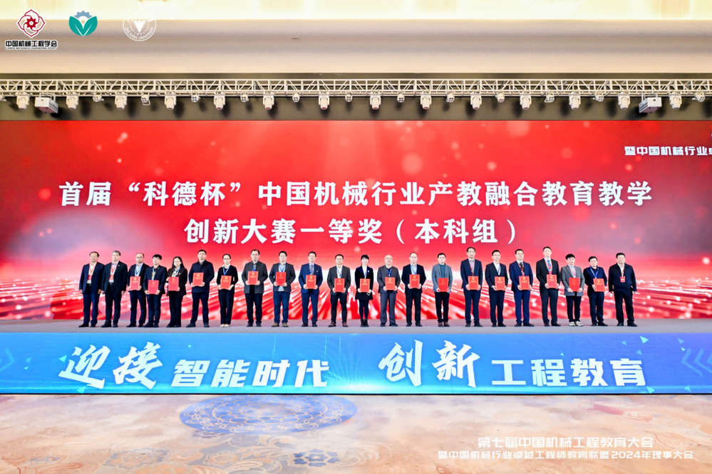 大会同时举行颁奖仪式,对首届“科德杯”中国机械行业产教融合教育教学创新大赛获奖作品进行了颁奖。首届大赛采用区域赛、国赛两级赛制,并设本科组、研究生组和企业组,共收到本科组、研究生组参赛作品311项,参赛高校共计140所,包括985高校21所,211高校47所,双一流高校49所。本次大赛本科生组共评出特等奖4项,一等奖38项,二等奖59项;研究生组共评出特等奖2项,一等奖4项,二等奖8项。