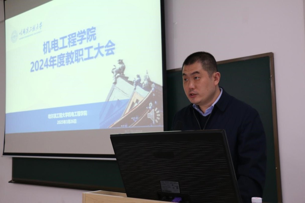 院长、党委副书记、工程训练中心主任徐建安同志作2024年度学院工作报告,总结了学院2024年的成绩,分析了学院当前发展阶段所面临的机遇与挑战,并对2025年新学期工作做出了全面布置。徐建安同志表示,2024年学院深入贯彻落实党的二十届三中全会以及习近平总书记视察学校时的重要讲话精神,坚决落实学校党委提出的“五个坚持、五个注重”办学原则,取得了一定成效。新的一年里,学院将聚焦国家船、海、军、民重大任务需求,瞄准机械工程学科未来发展动态,深化学院学科特色内涵,牢记立德树人根本任务,做好有组织的人才培养和科学研究工作,以学科建设为引领把学院的各项发展推向新的高度。