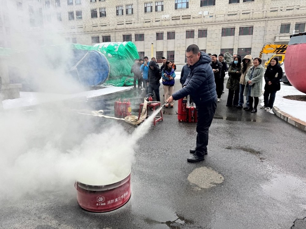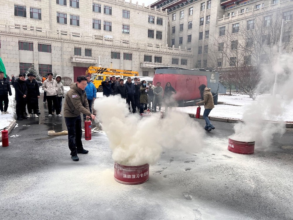本次消防培训演练采取实战模式,分三个阶段和两个场景进行。第一阶段是消防安全常识培训,提升全体师生的消防安全意识和强化基本消防常识;第二阶段是摸拟培训现场和某学生工作室真实火情,设置火灾初期组织灭火、火情扩大报告求援、火情失控报警后紧急疏散等演练科目;第三阶段是全体人员室外集合进行灭火器材实操演练。