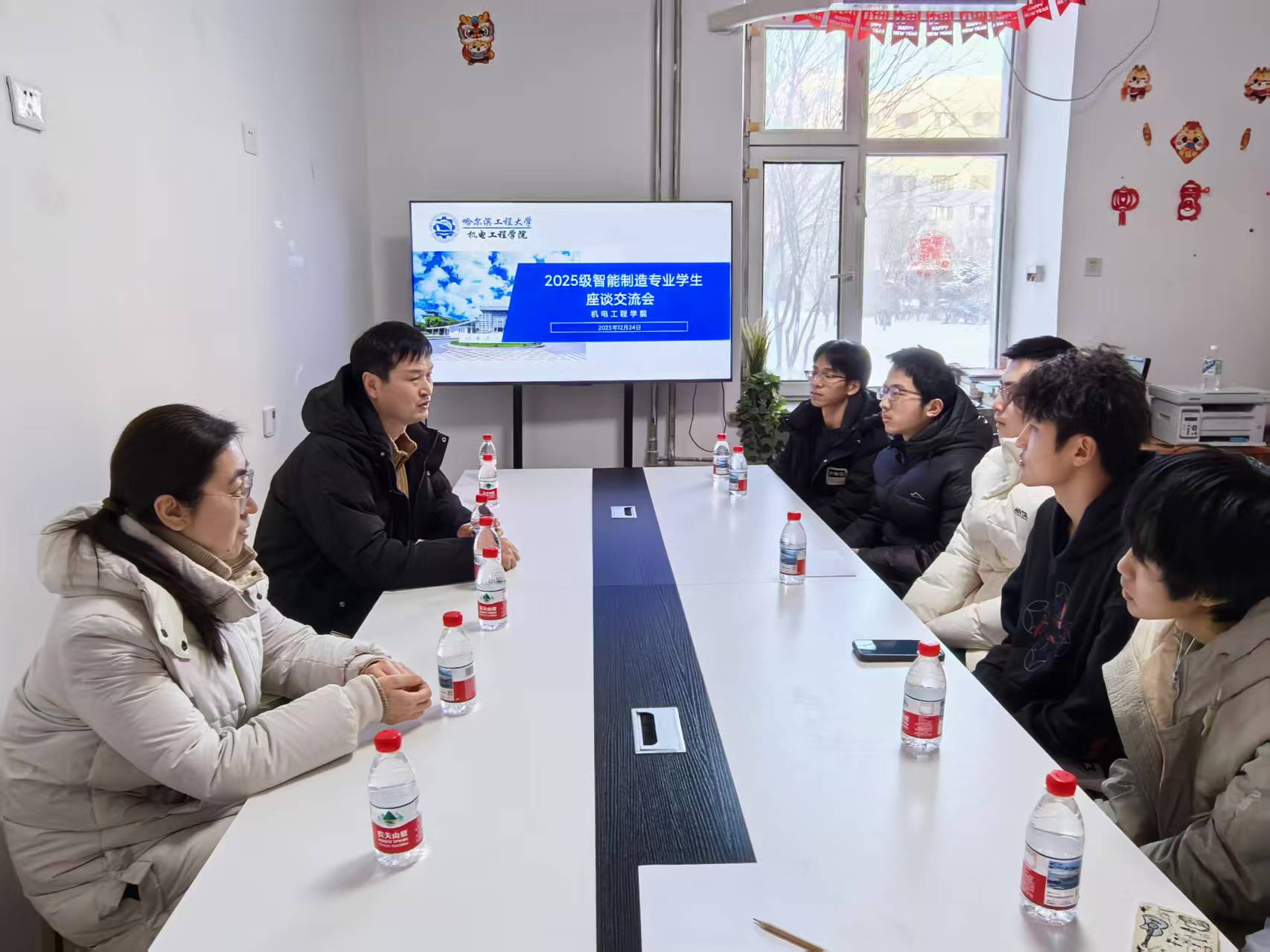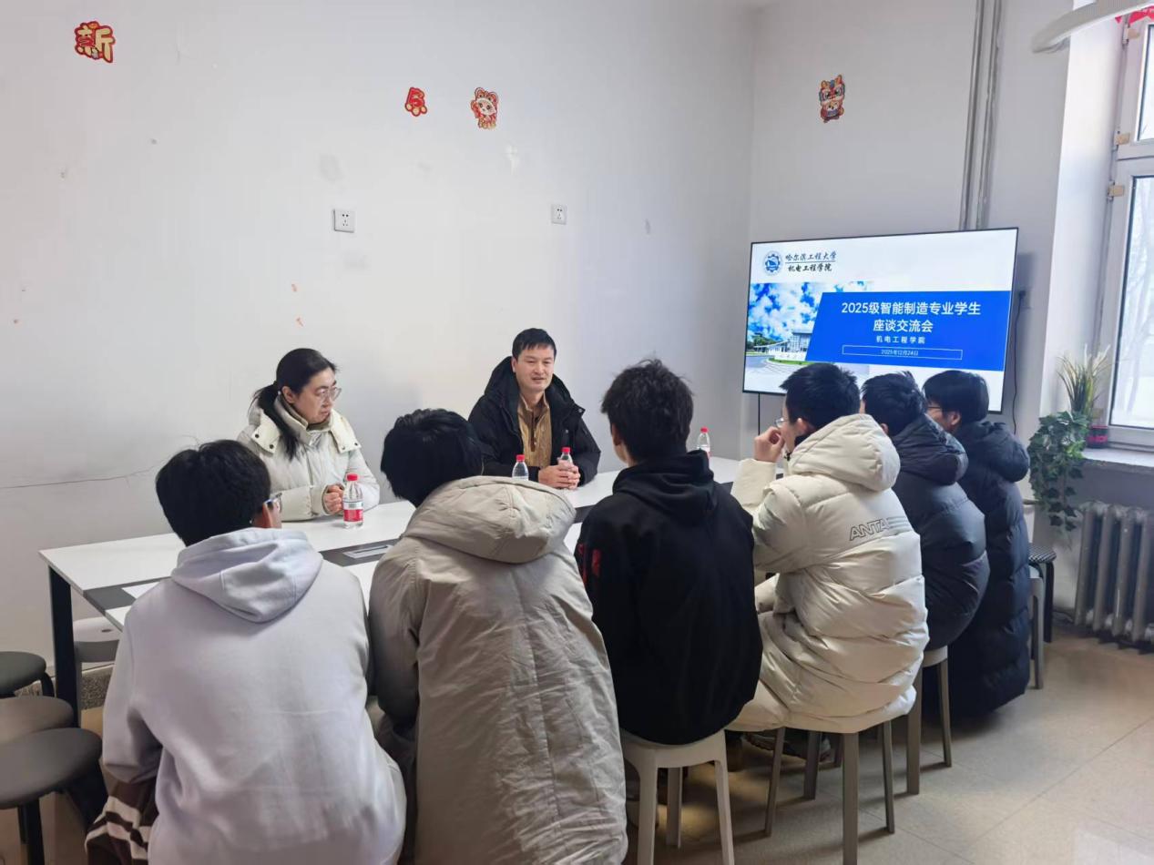 12月24日下午,bw必威西汉姆联官方网站智能制造系党支部书记李江、教师郭健来到海岳书院138活动室,与2025级智能制造工程专业的同学们开展了一场深入而亲切的座谈交流。本次座谈会旨在加强专业教师与新生之间的沟通联系,引导新生更好适应大学生活、明确专业方向。座谈会由2025级辅导员于超群主持。
